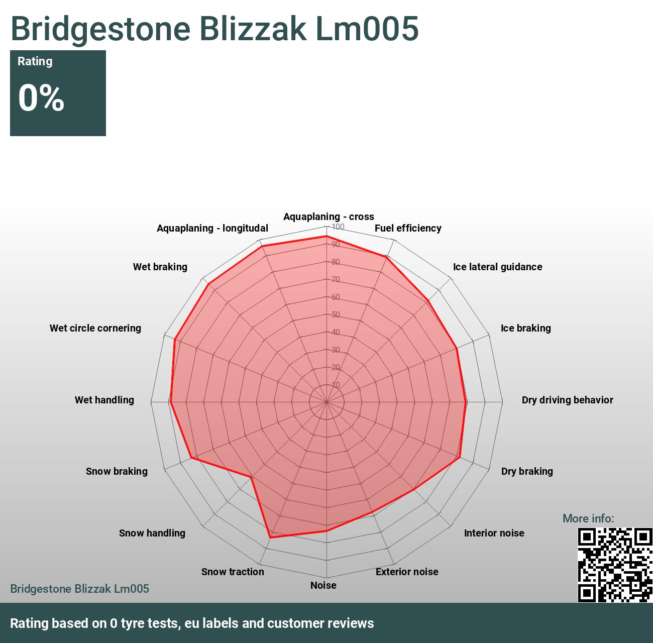 Bridgestone Blizzak Lm005 се изработва в 22 размери, като се започне от 185/60 R15 до 355/25 R22.